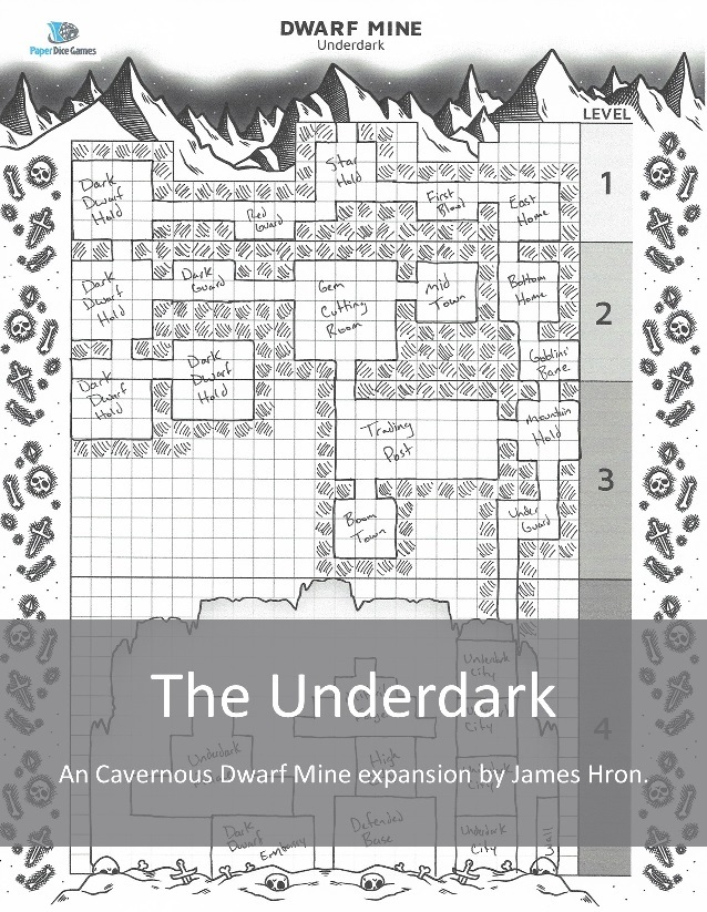 Hidden well beneath the great mountains, there exists a gloomy and gargantuan cavern inhabited by the dark civilizations of the world. Goblins, Dark Elves, and Dark Dwarves build their armies and thrive in the empty spaces between the stone. Your mine will dig deep and reach the fabled Underdark. Will you navigate the dangers of the Underdark and survive in the dark place beneath the mountain? Or will the dangerous creatures spell your doom. Play to find out, as your mine tells its story!